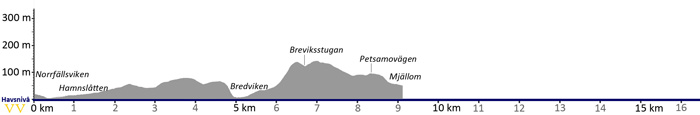 Etappen mellan Norrfällsviken och Mjällom är bitvis krävande. Sträckan är omväxlande berg med hällmarker och låglänta, sandiga områden. Följ asfaltsvägen genom Norrfällsviken. Efter Hamnslåtten viker Världsarvsleden in på en mindre väg mot Trollarviken, varifrån även Rammberget naturreservat nås. En stig leder till branten ner mot Bredviken som är en fin sandstrand. Från Bredviken är det en lång stigning, den brantaste delen är försedd med trossräcke, upp till Bredvikberget där man med en kort avstickare från Världsarvsleden kommer till Bredviksstugan. Stugan är öppen för allmänheten och utsikten över Omnefjärden är storslagen. Sista biten mot Mjällom är en välanvänd och lättvandrad stig genom skogen. I Mjällom finns Kulturfabriken med café och utställning, samt en livsmedelsbutik.