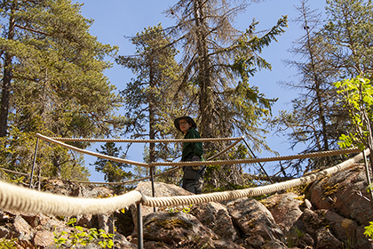 Från Breviksstugan går en naturskön, men brant, stig ner till Måviken.