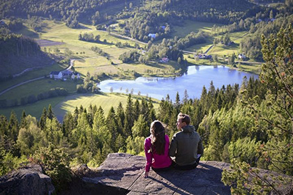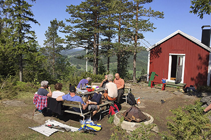 Hilltop cabin located on the very edge of Själandsklinten, 217 m above sea level, where the rare alpine purple mountain saxifrage grows in a crevice. Short walks across the ridge offer several spectacular views. Freshwater well nearby.